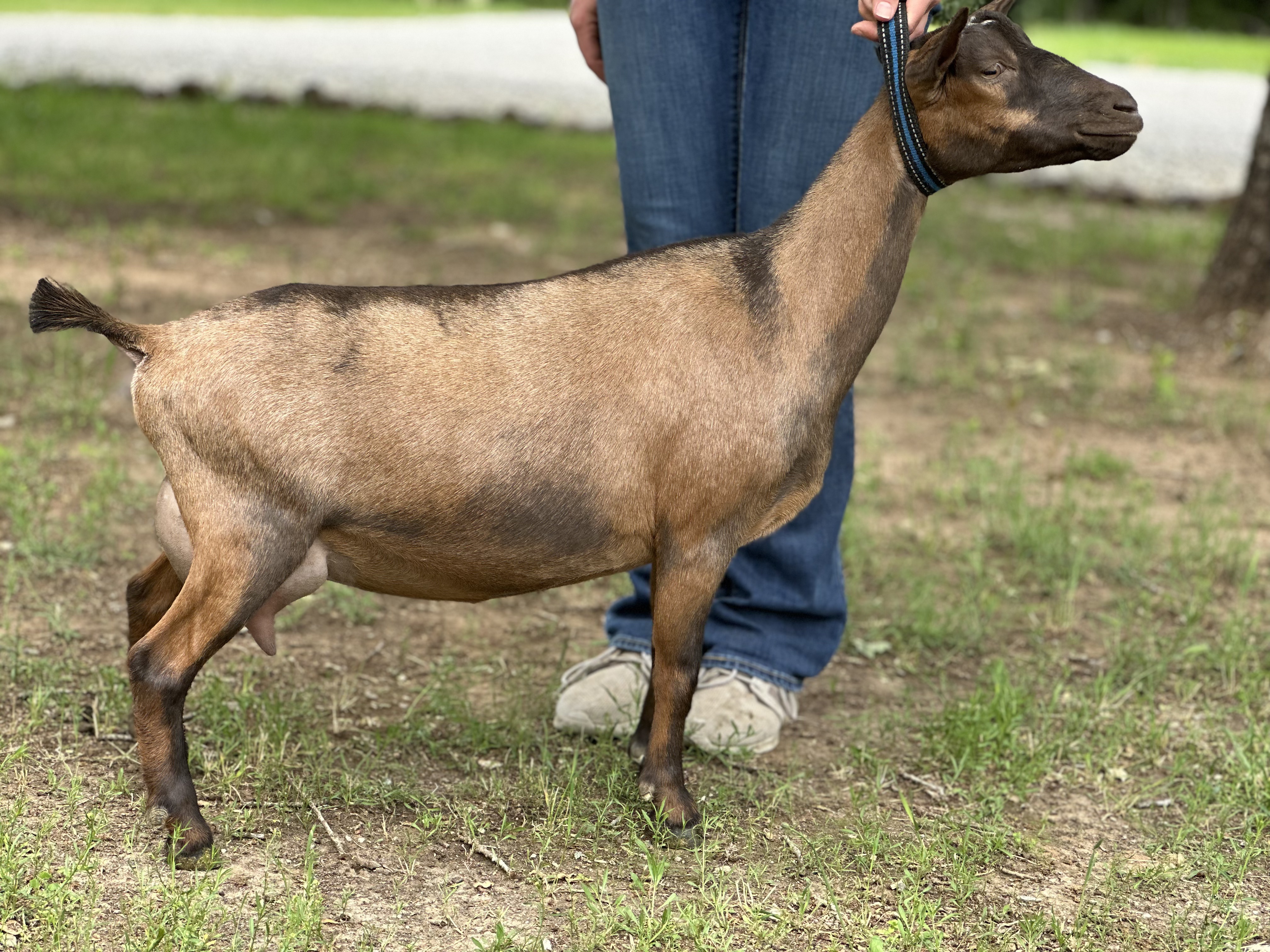 Ariel is a very structurally sound and extremely dairy doe. She was taken off the farm for the first time in October of 2022 to her first show where she took home her junior leg and Junior best in show under Judge Mark Baden.